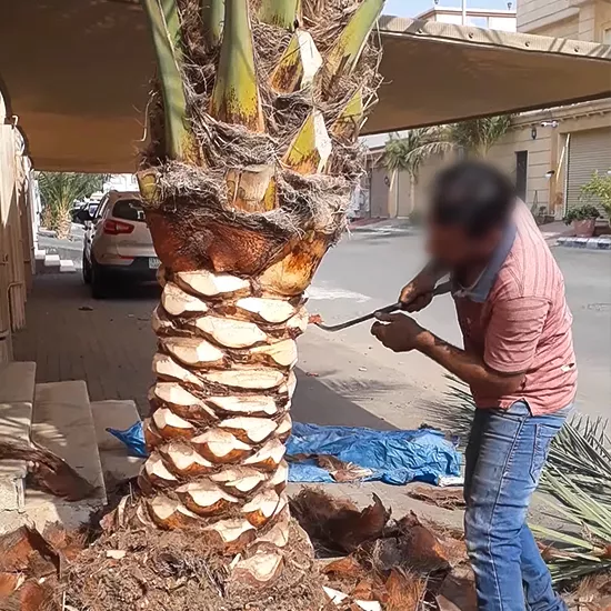 يجب ري الشجرة أو النخلة بعد الزراعة مباشرة لضمان رطوبة التربة. من المهم متابعة مستويات الري في الأسابيع الأولى، خاصةً إذا كانت المنطقة جافة.